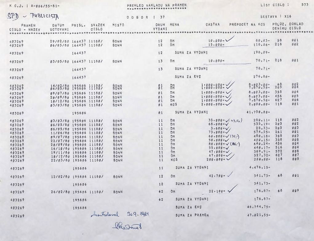 Obr. Prehľad o odmenách DS Publicistu za rok 1984, ako aj odmena za realizáciu AO PÍSMO (zdroj: ABS)