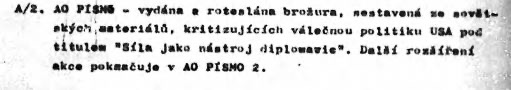 Aktívne opatrenie „Písmo“ bolo nakoniec realizované v roku 1984. Šlo o vydanie brožúry v náklade 5000 kusov s názvom „Sila ako nástroj diplomacie“.