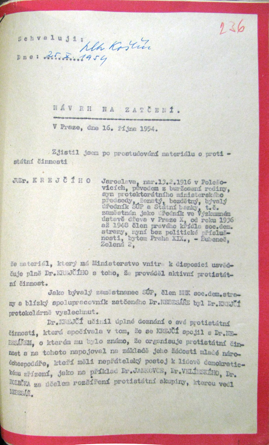 Návrh na zatčení prof. Jaroslava Krejčího (ABS)