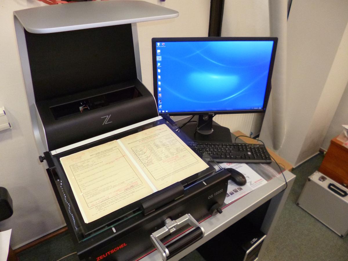 S převodem archiválií a dokumentů komunistických bezpečnostních složek do elektronické podoby začal ÚSTR nejprve za pomoci nedostatečného hardwarového a softwarového vybavení delimitovaného z OABS MV, Úřadu pro zpřístupňování dokumentů ministerstva obrany[6] a archivního úseku Úřadu pro zahraniční styky a informace.[7] Delimitovaná skenovací technika zpočátku jen zčásti odpovídala požadavkům na efektivní digitalizaci, proto se již od počátku s ohledem na finanční možnosti kladl v této oblasti důraz na její modernizaci. Odbor informatiky a digitalizace ÚSTR pořídil tři nové výkonnější průtahové skenery pro skenování dokumentů v dobrém fyzickém stavu (Canon 4010), tři knižní skenery pro skenování dokumentů (Minolta PS5000C), vyžadujících citlivé zacházení, rychlý skener pro poloautomatické skenování mikrofiší (Zeutschel OM 1500) a k dispozici byl rovněž skener pro ruční skenování mikrofiší či mikrofilmů (Kodak 2400). Dosavadní praxe digitalizace fotoaparátem se vyloučila jako nekvalitní.