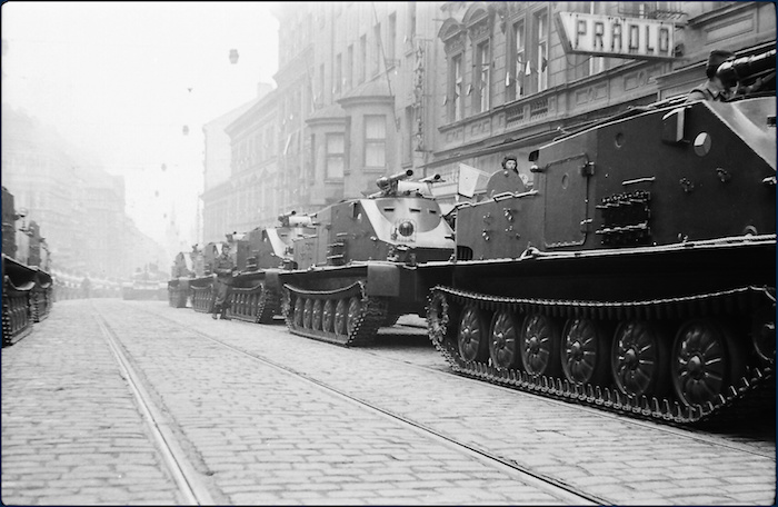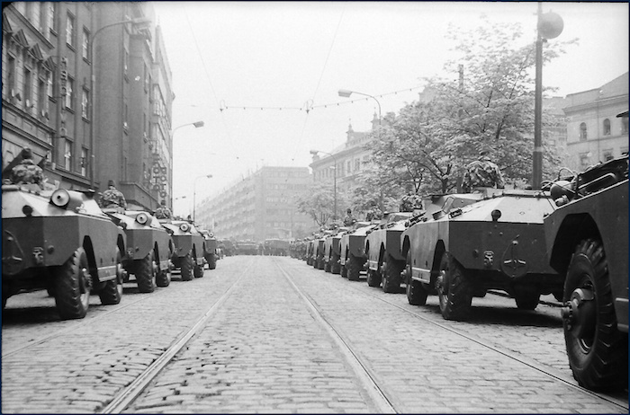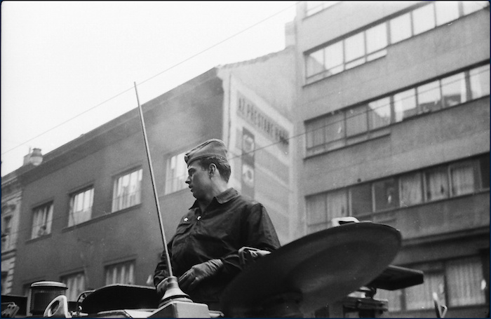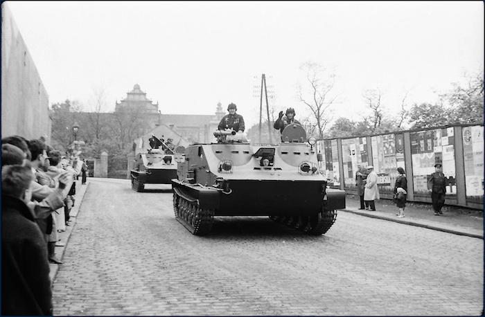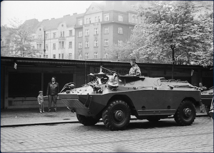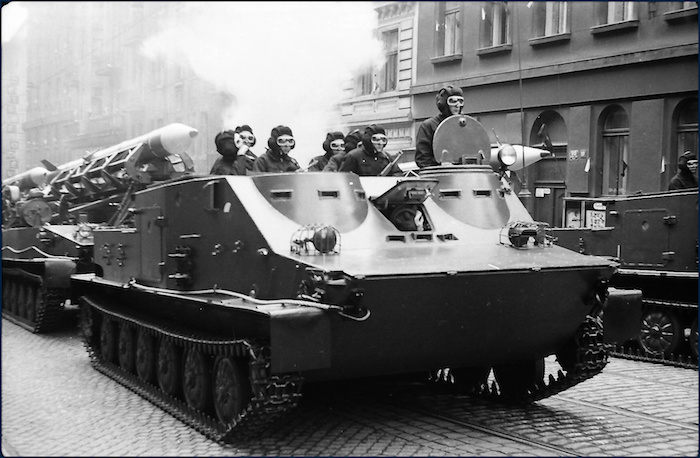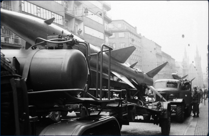Když jsem viděl naleštěné transportéry SKOT a tanky - tuším T55 tak jsem neodolal, vytáhl fotoaparát a začal jsem fotografovat. Postupně jsem šel nahoru a  najednou jsem viděl rakety – dnes vím, že to byly rakety VOLCHOV a tak jsem si říkal to mi nesmí chybět na památku. Jakmile jsem dal RETINU k oku a zmáčkl spoušť tak se rozpoutala ale spoušť docela jiná. Proti mě se rozeběhlo pár vojáků s vyššími hodnostmi, jednomu upadla čepice na zem druhý uklouzl na dlažbě a já už to bral  mezi lidmi do vedlejší ulice a pryč. Nedovedl jsem si představit, že bych přišel o otcův fotoaparát nebo v nejlepším případě o film.