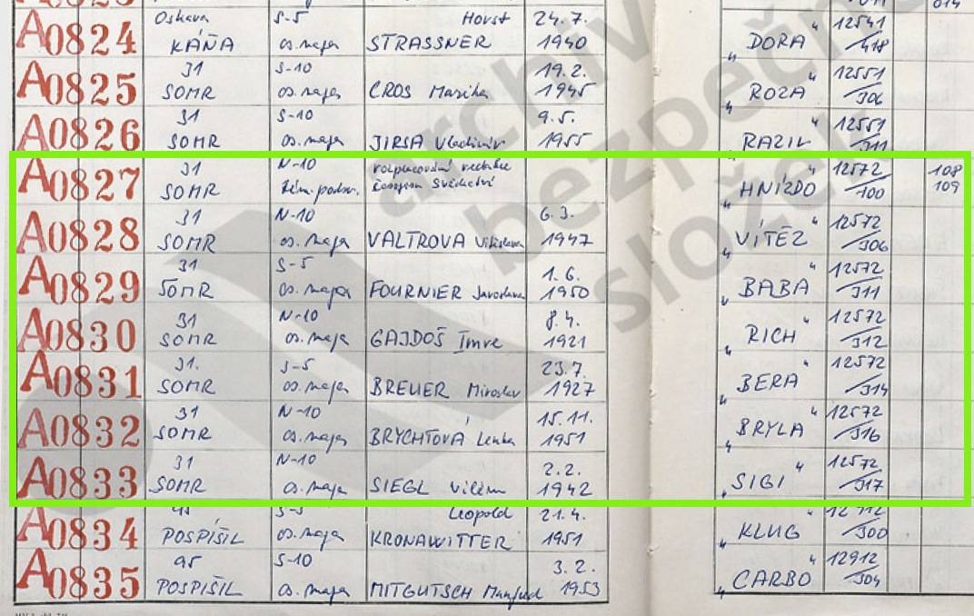 2 Krycí jméno Pavla Tigrida ve svazcích rozvědky po roce 1969. Srov. 12572/300
