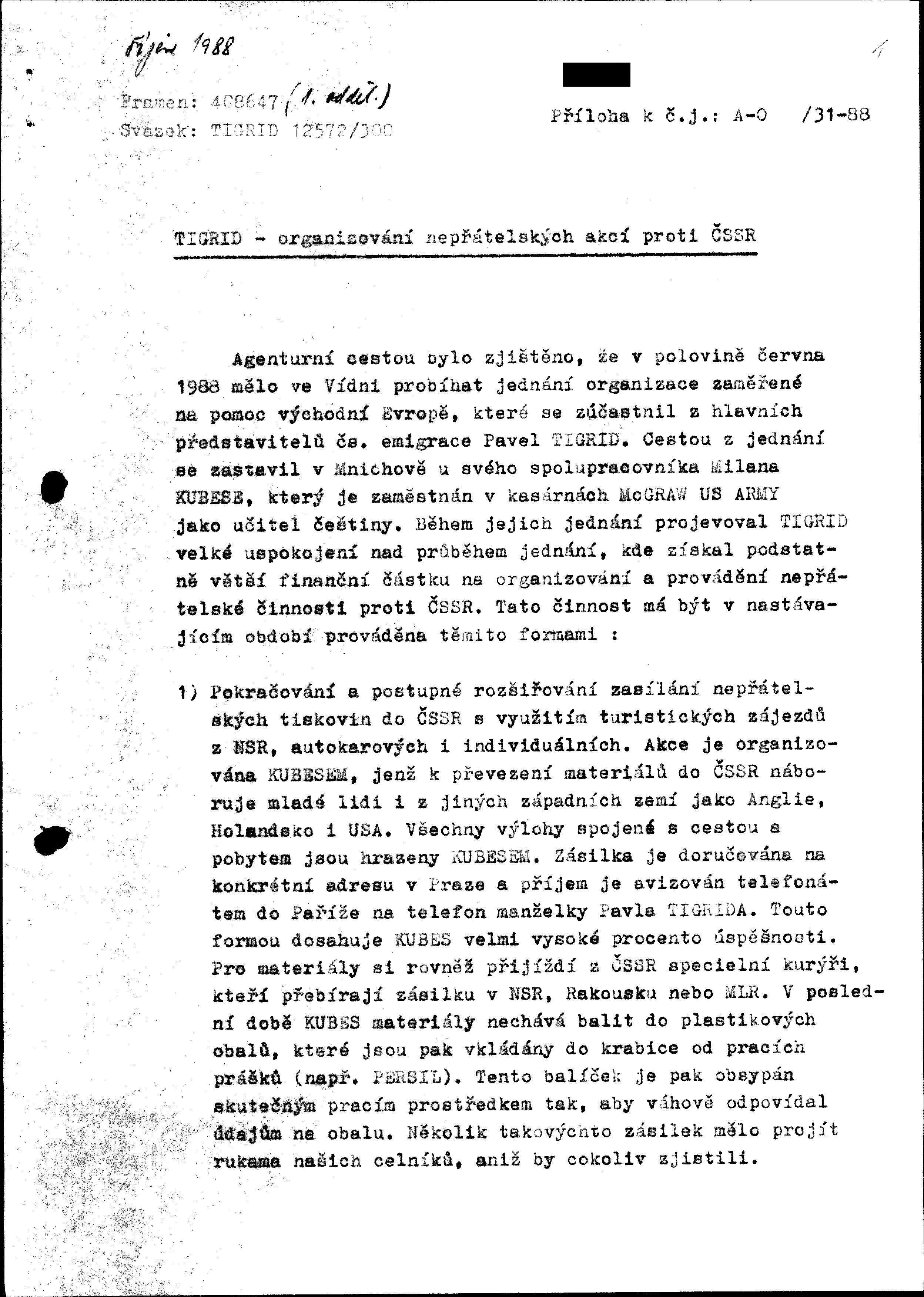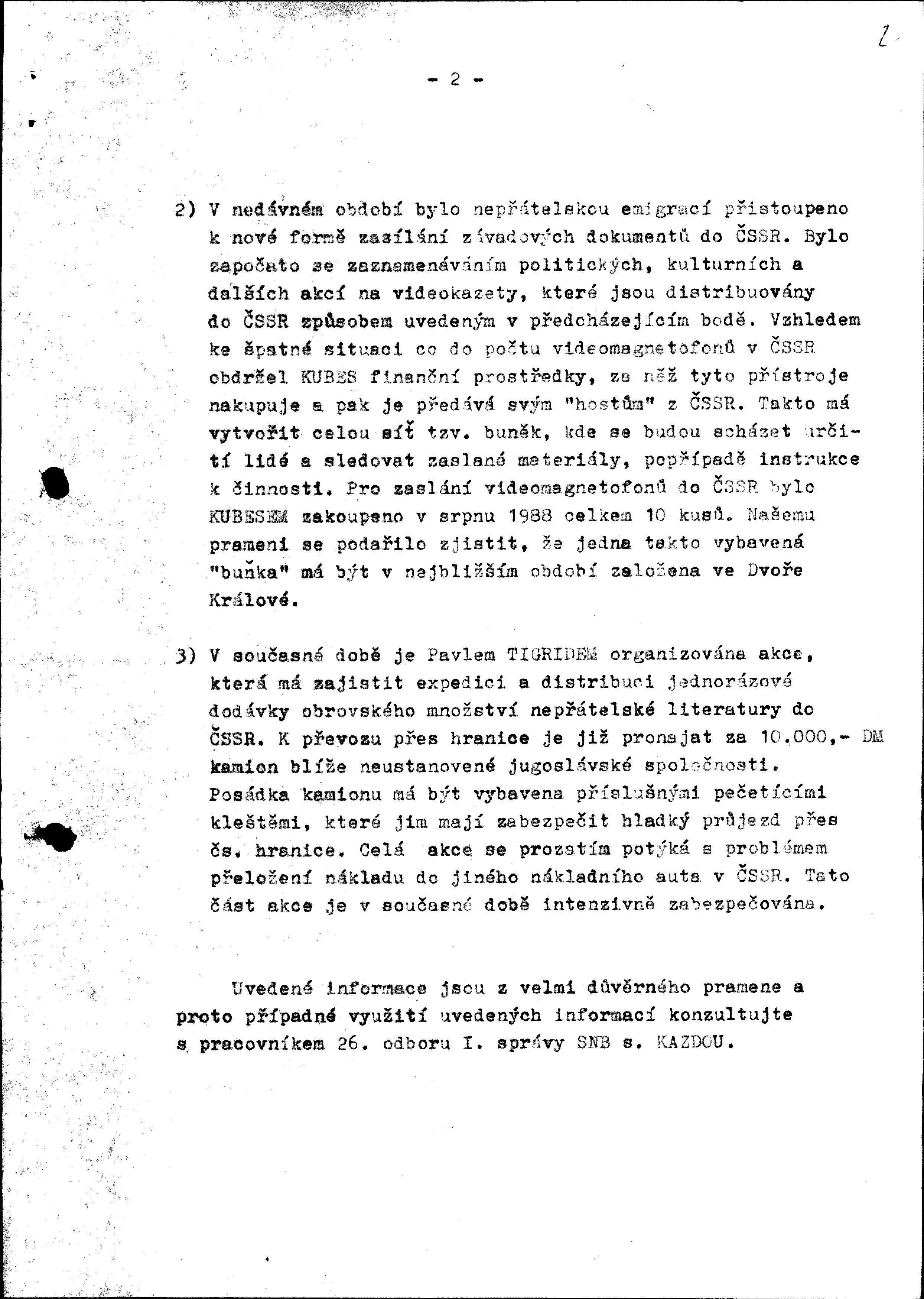 V sedmdesátých a osmdesátých letech existovalo mnoho nejrůznější „kanálů“ kterými do Československa proudily knihy, časopisy, peníze a rozmnožovací technika. Zkrátka, vše co disent potřeboval ke své činnosti. Státní bezpečnost se usilovně snažila tato spojení přerušovat nebo alespoň monitorovat a částečně manipulovat s převáženým kontrabandem. Ve Vídni mnoho let působil agent Ivo Šafář i agentka Miloslava Mrázová, kteří byli do těchto aktivit zasvěceni a podávali Státní bezpečnosti cenné informace. Hlavně Ivo Šafář, který obsluhoval sklad zásilek určených do Československa a který do něho poskytl Státní bezpečnosti přístup. I na straně příjemců v Československu pracovalo několik špičkových agentů Státní bezpečnosti. Mezi nejdůležitější patřili Jaroslav Peřina, Jiří Lom, Václav Rejholec, Bohumil Černý nebo Václav Hyndrák.