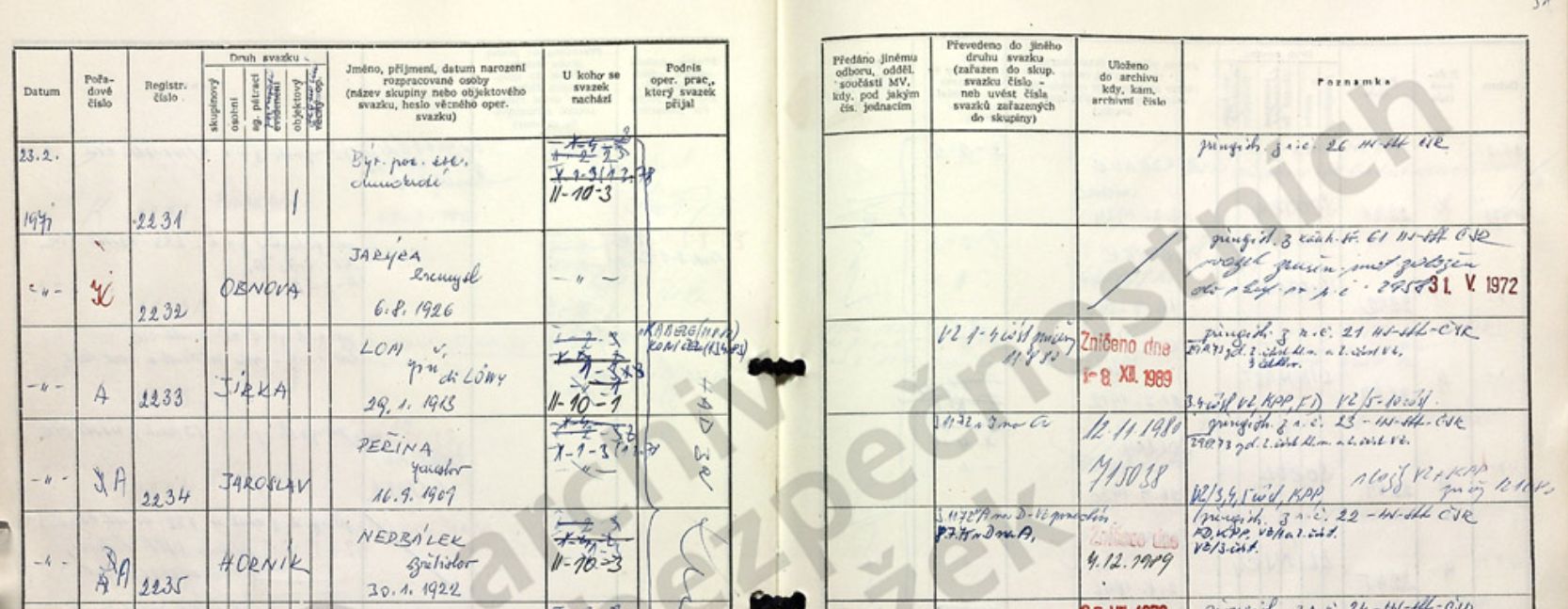 [3] Srov. registrační prokotol centrály StB reg číslo 2233 kr. jm. Jirka a 2234 kr. jm. Jaroslav